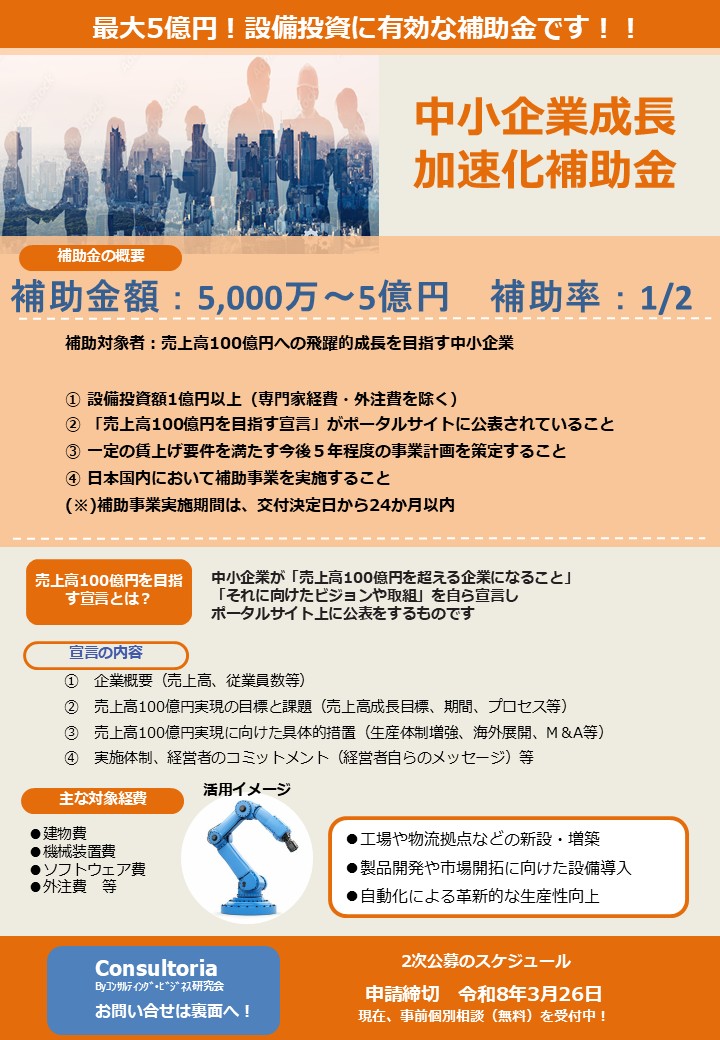 中小企業成長加速化補助金の申請支援のご相談につきまして、お急ぎの方は、こちらへお電話ください。
